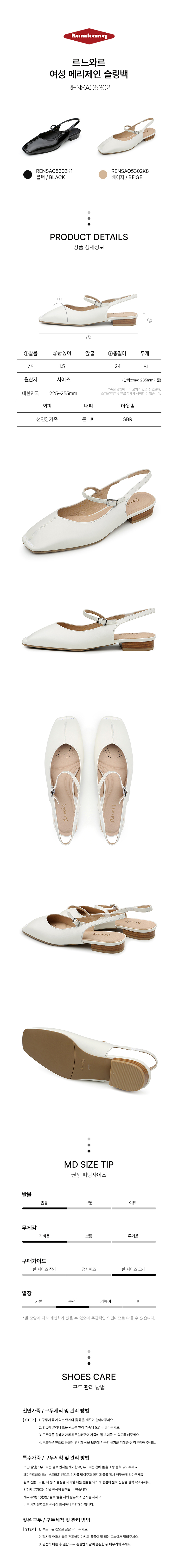 | 굽높이 | 굽높이:1.5cm|측정사이즈:235mm|발볼:7.5cm|무게:181g|길이:24cm |