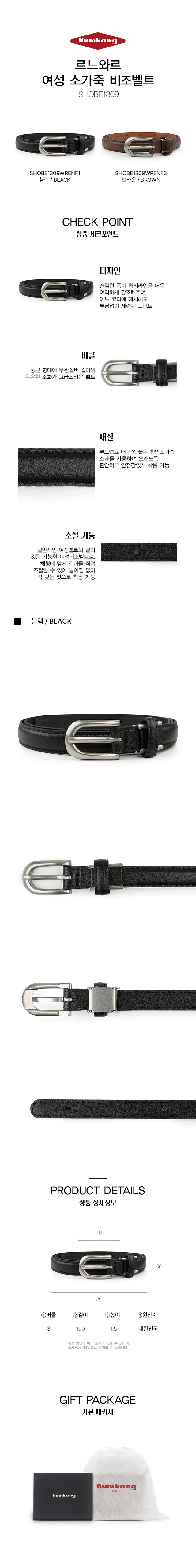 | 치수 | 버클: 세로 2cm / 가로 3cm / 길이: 109cm / 높이 1.5cm |