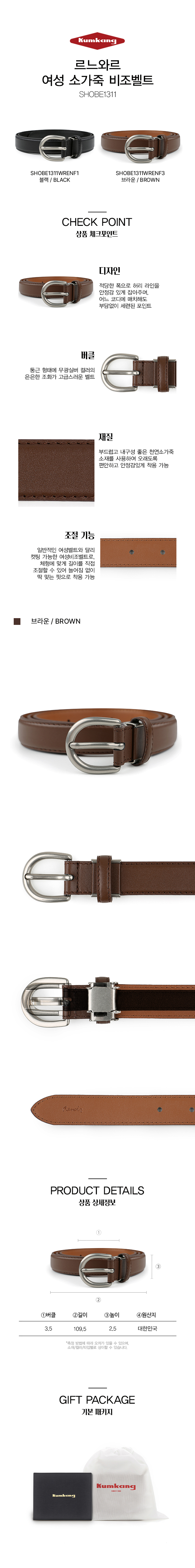 | 치수 | 버클: 세로 3.5cm / 가로 3.5cm / 길이: 109.5cm / 높이 2.5cm |