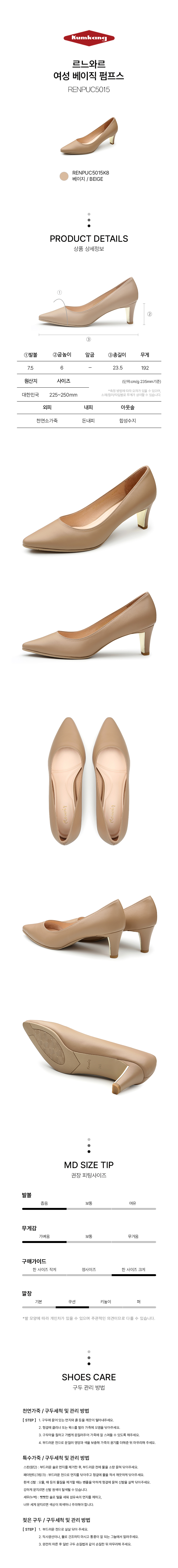 | 굽높이 | 뒷굽:6CM앞굽:CM측정사이즈:235MM발볼:7.5CM무게:192G길이:23.5CM |