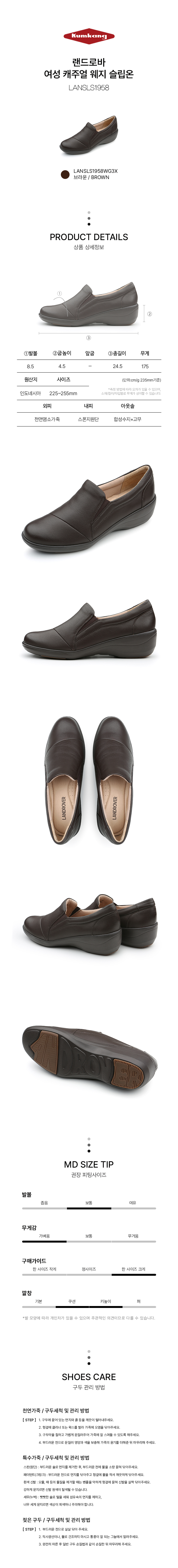 | 굽높이 | 굽높이:4.5cm|측정사이즈:235mm|발볼:8.5cm|무게:175g|길이:24.5cm |