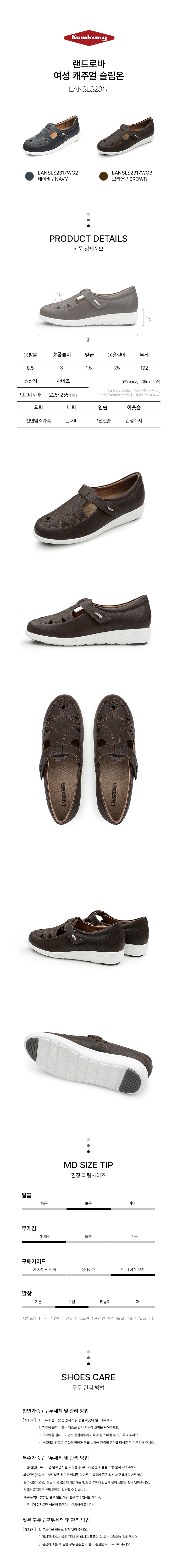 | 굽높이 | 굽높이:3cm|측정사이즈:235mm|발볼:8.5cm|무게:192g|길이:25cm |