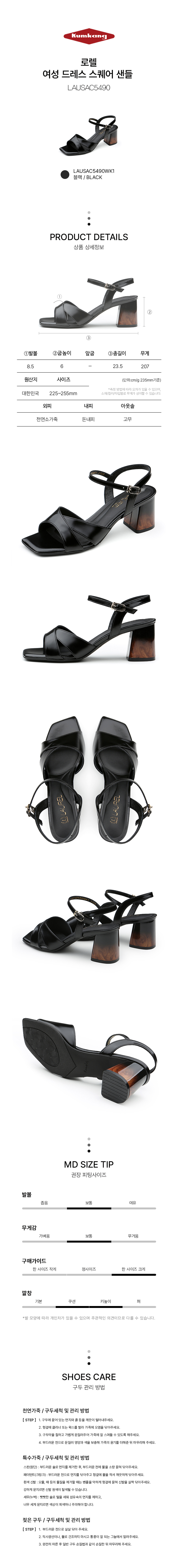| 굽높이 | 굽높이:6cm|측정사이즈:235mm|발볼:8.5cm|무게:207g|길이:23.5cm |